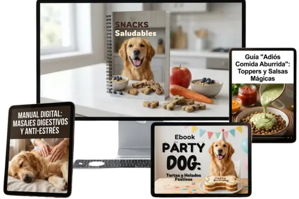 Olvídate de buscar recetas sueltas en internet. En este EBOOK Hemos organizado +50 fórmulas en 5 módulos diseñados para cubrir cada necesidad de tu peludo: